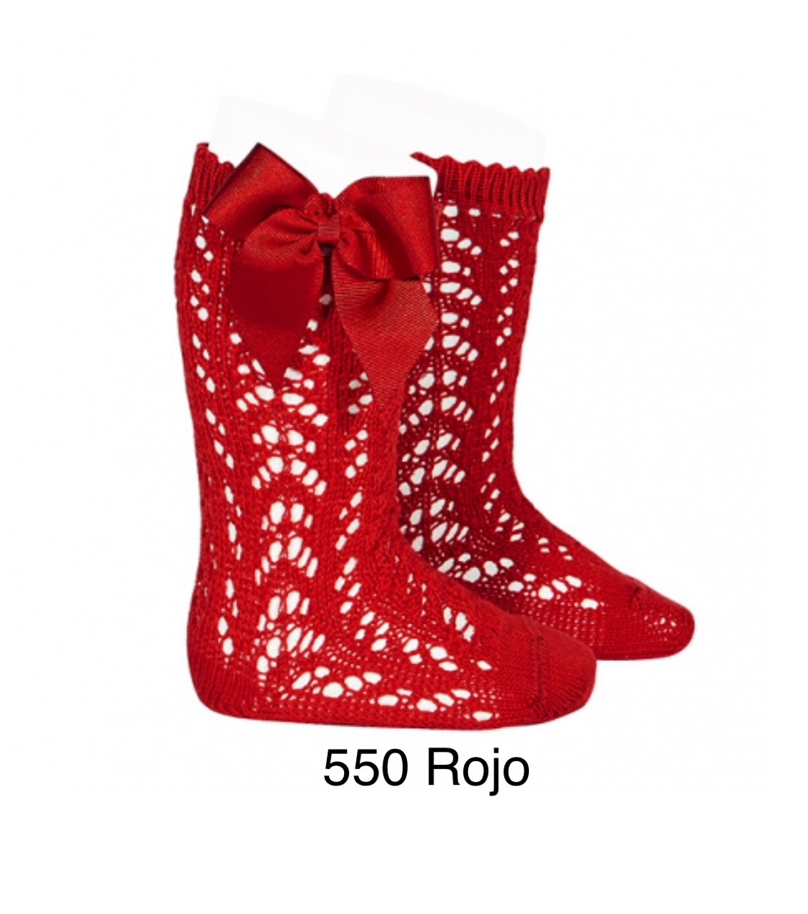 Calcetín alto perlé calado lazo grogén para bebé de Cóndor.