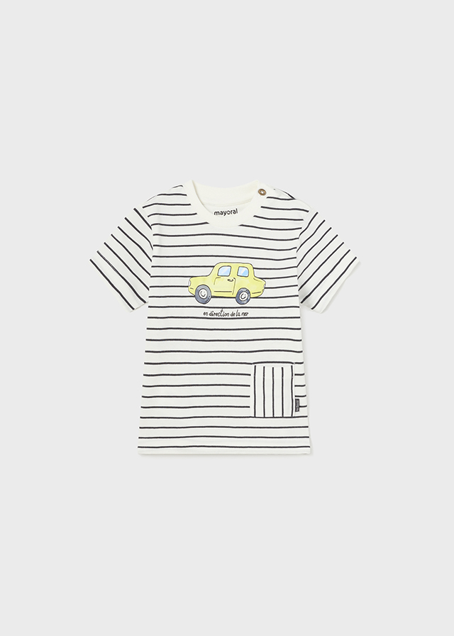 Camiseta manga corta de rayas, coche, para bebe niño de la marca Mayoral.