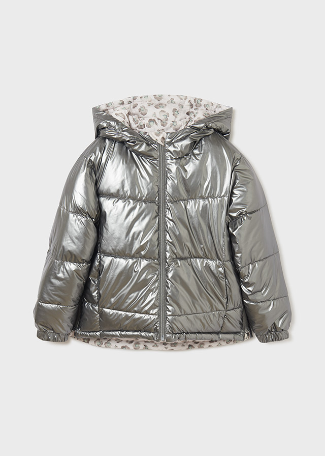 Cazadora acolchada brillo reversible, interior gris claro liso, para junior niña de Mayoral.