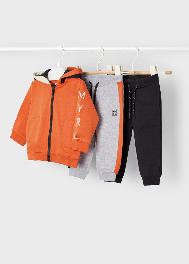 Chándal 3 piezas, sudadera cremallera con capucha y 2 pantalones largos para bebé niño de Mayoral.