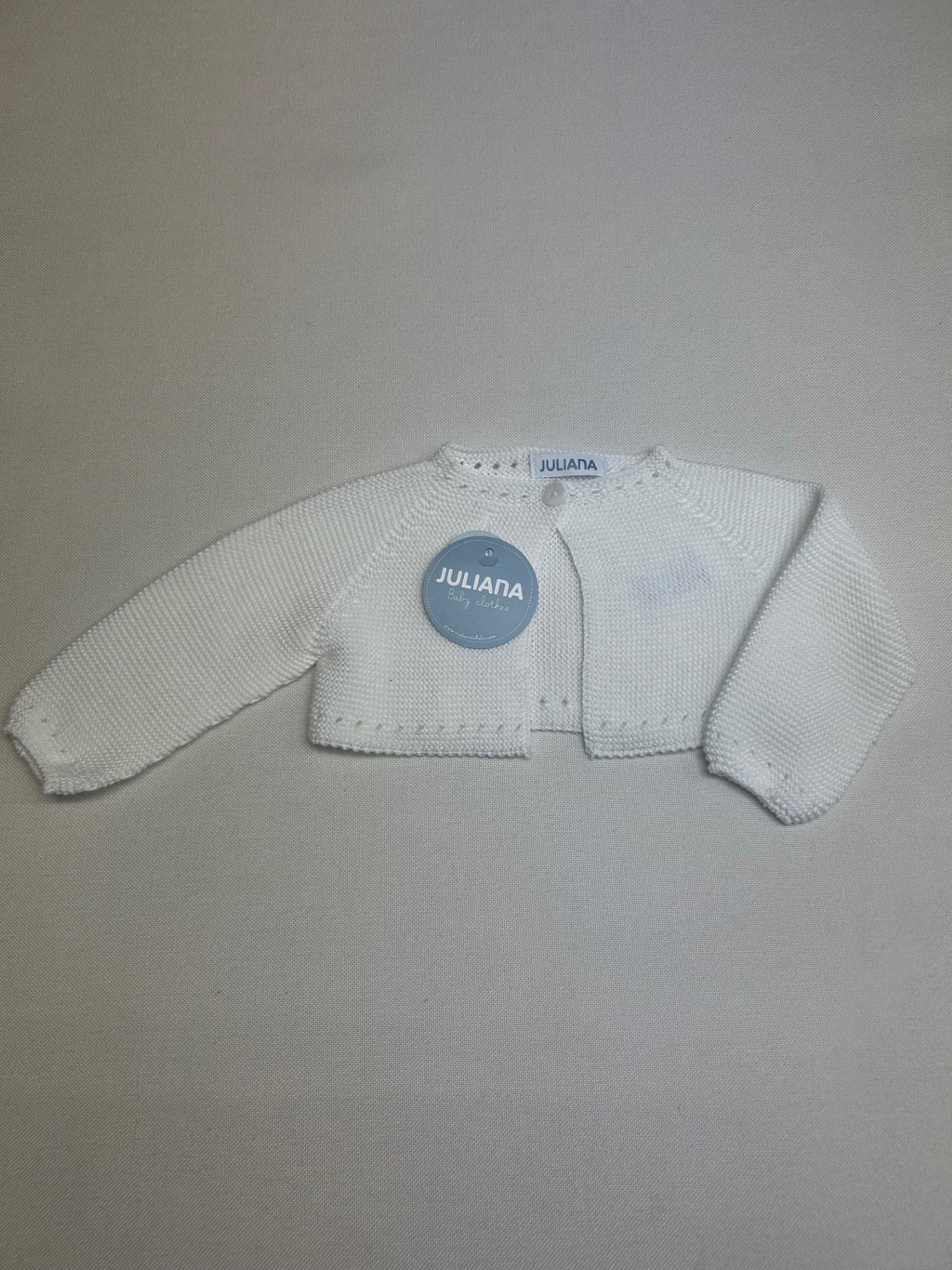 Chaqueta corta de punto verano, lin pasacintas, para bebé de la colección Juliana.