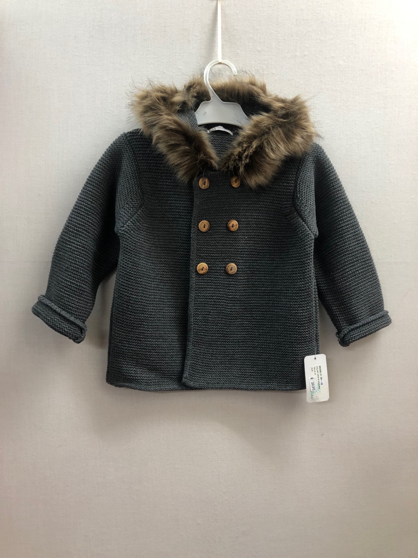 Chaqueta de punto con bolsillo, botones de madera, con capucha pelo para bebé niño – niña de Marialex.