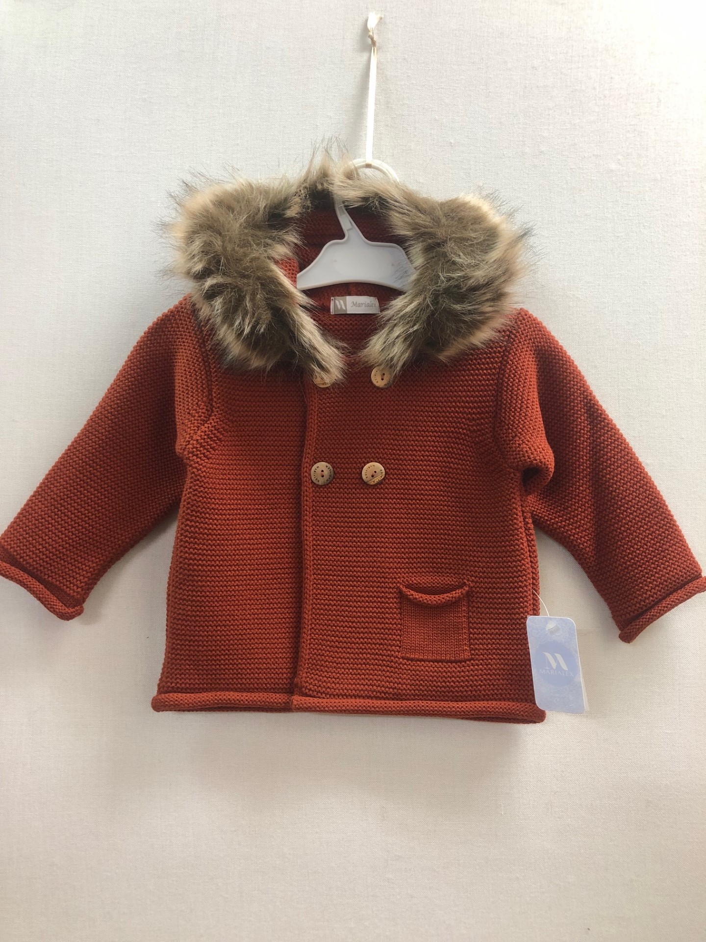 Chaqueta de punto con bolsillo, botones de madera, con capucha pelo para bebé niño – niña de Marialex.