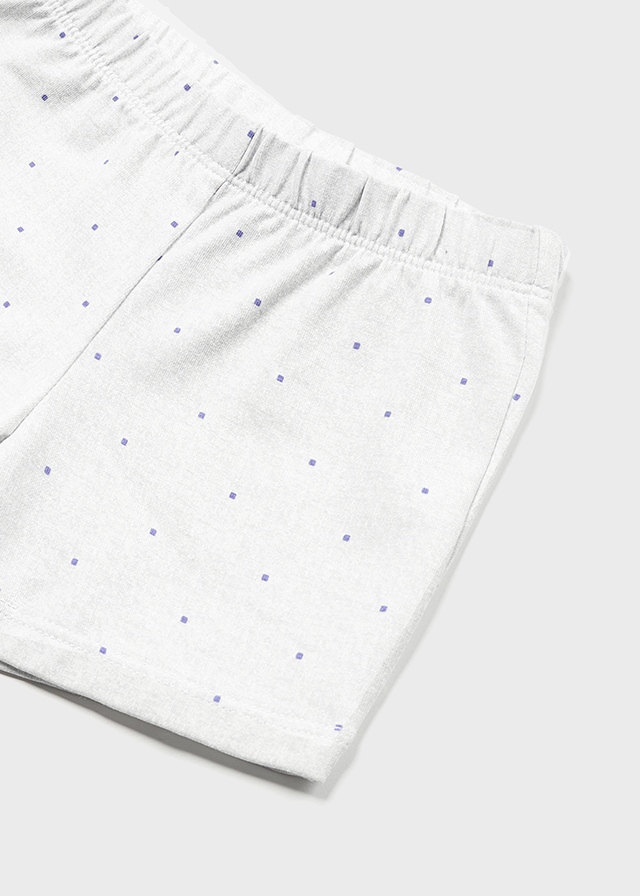 Conjunto de algodón, polo de manga corta (abrochar atrás) en blanco y pantalón corto estampado puntitos, para canastilla niño Mayoral.