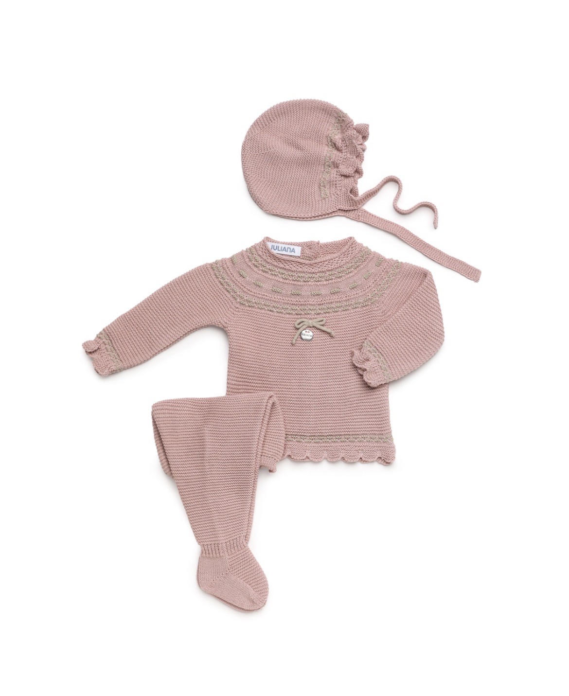 Conjunto polaina, jersey y capota punto verano para bebé de la colección Juliana.