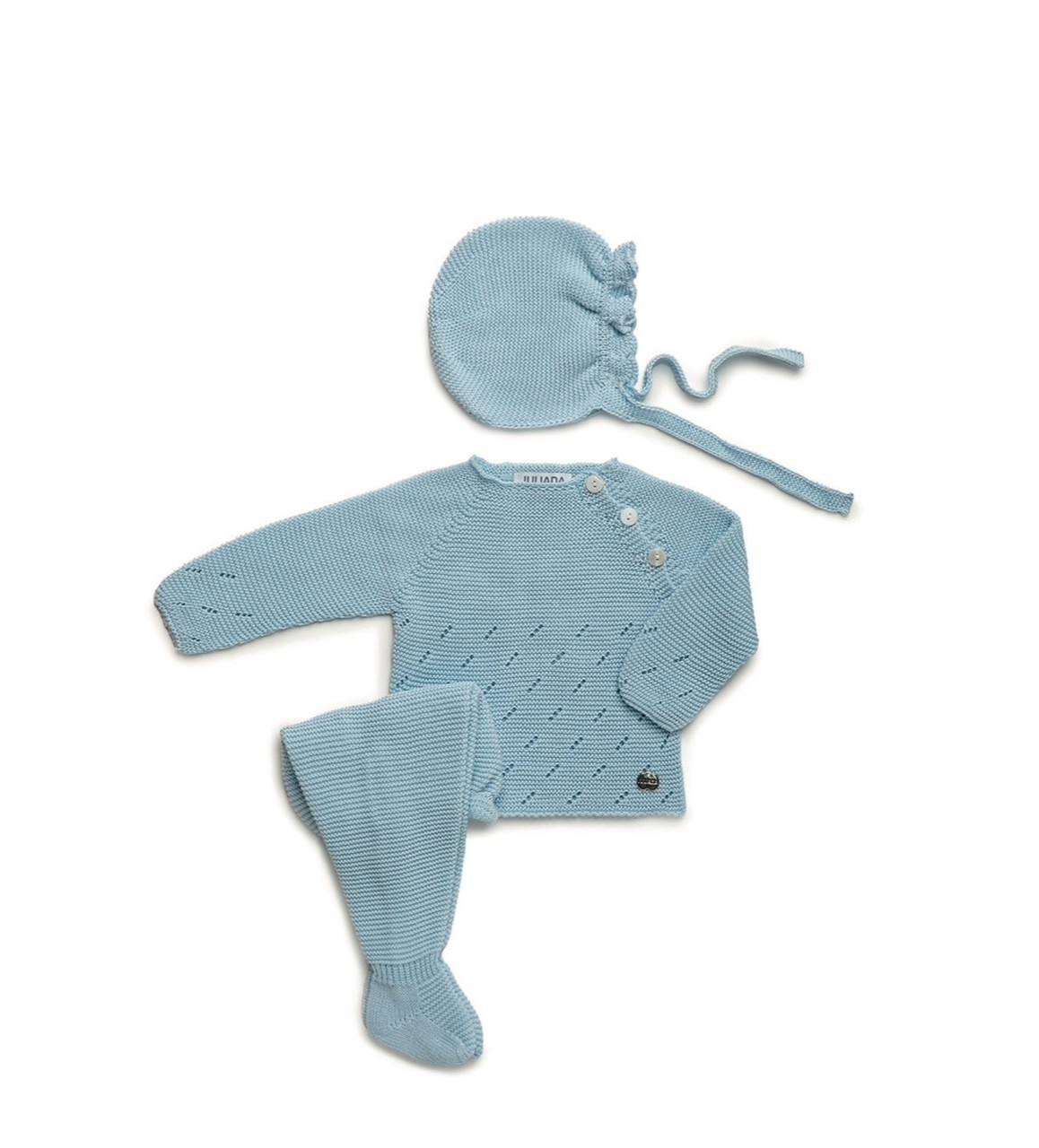Conjunto polaina 3 piezas calado para bebé niño de la colección Juliana.