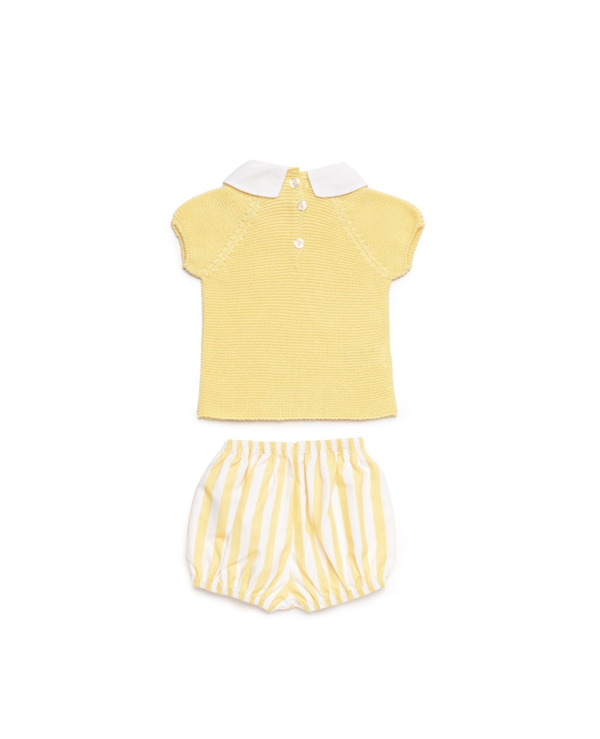 Conjunto pantalón rayas y jersey con cuellos para bebé niño de la colección Juliana.
