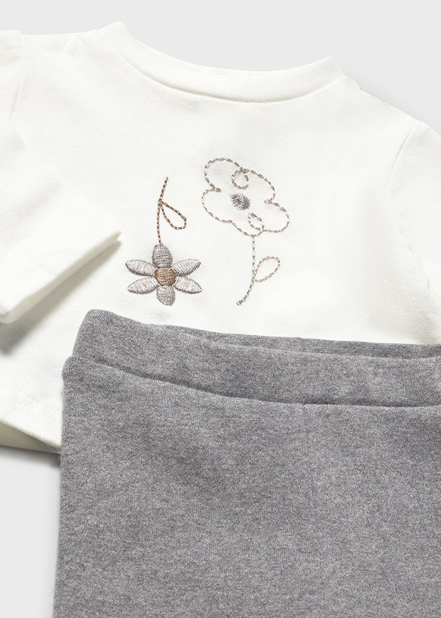 Conjunto 3 piezas, chaqueta, camiseta m/l y leggings, para bebé niña de la colección canastilla de Mayoral.
