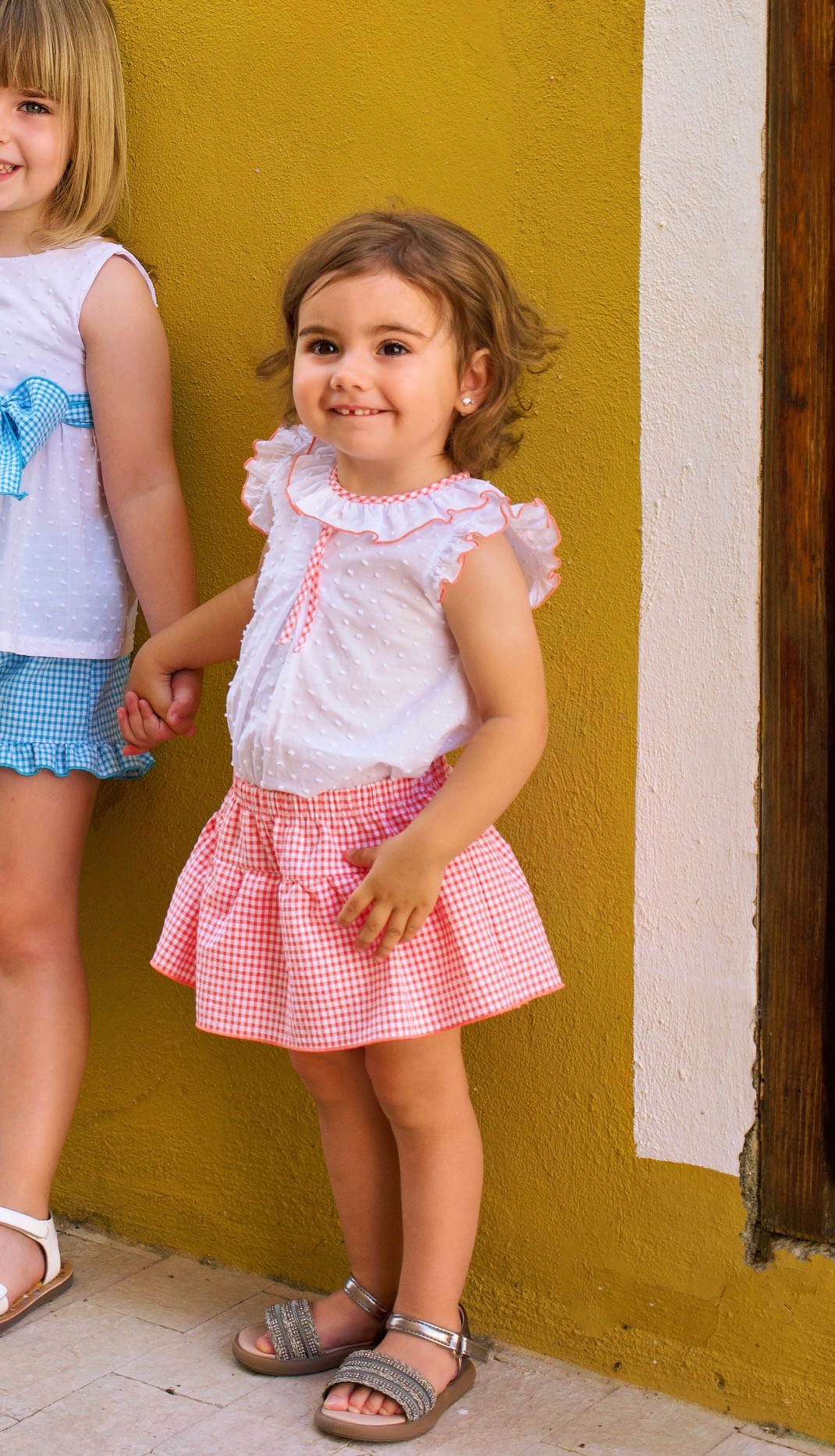 Conjunto blusa plumeti con ribete y falda braguita cuadros para bebé niña de Rapife.