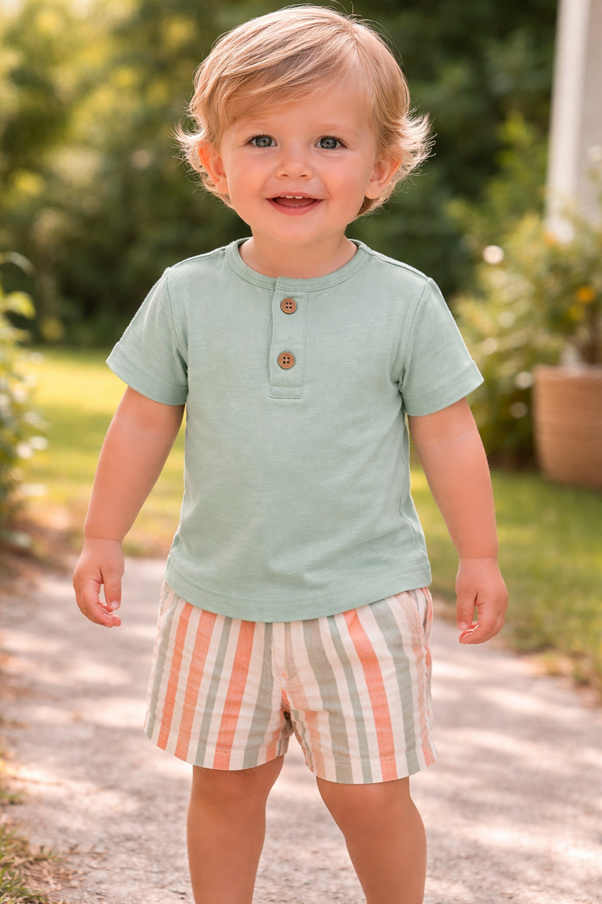 Conjunto camiseta m/c verde agua y bombacho rayas para bebé niño de Rapife.