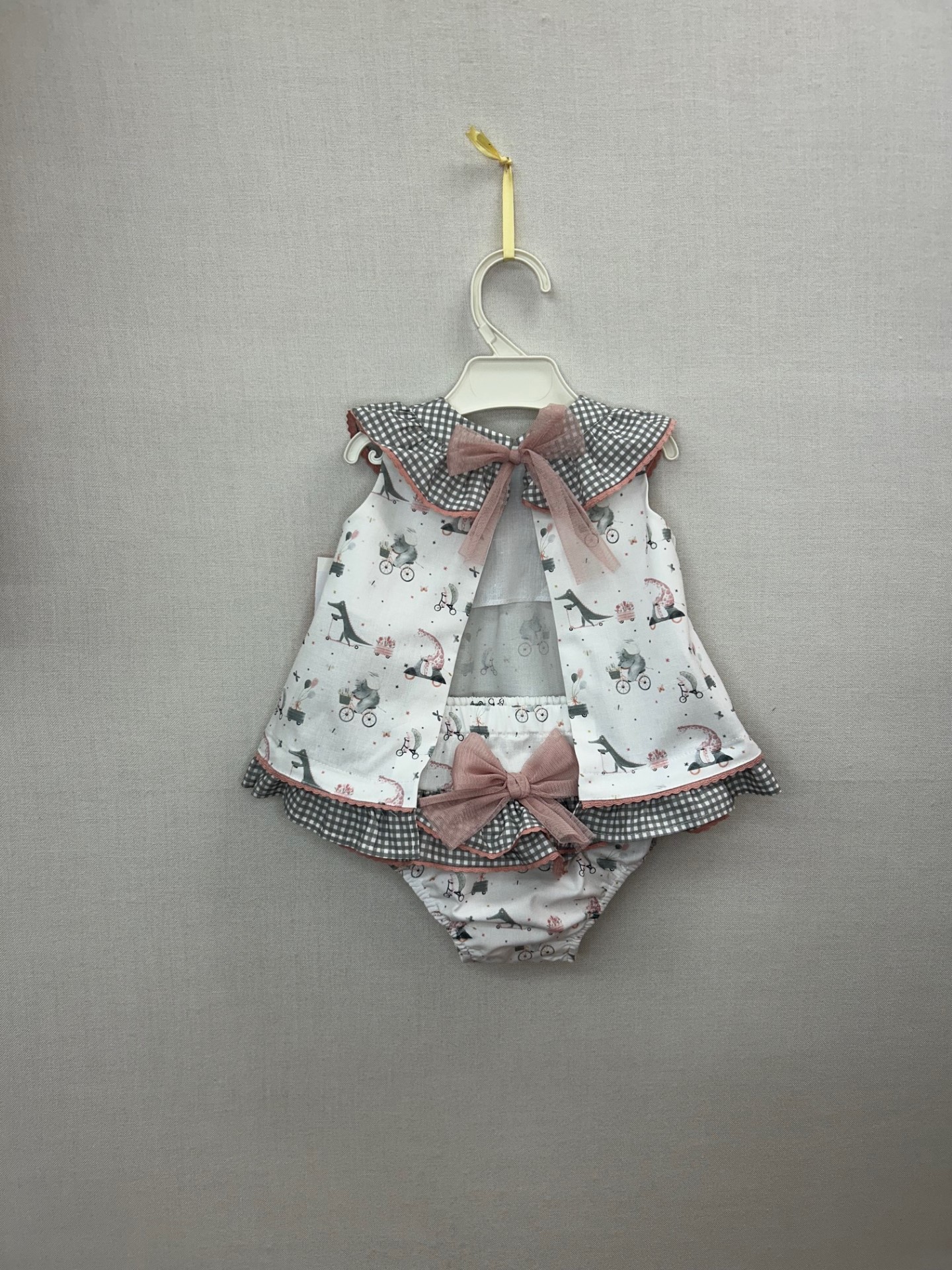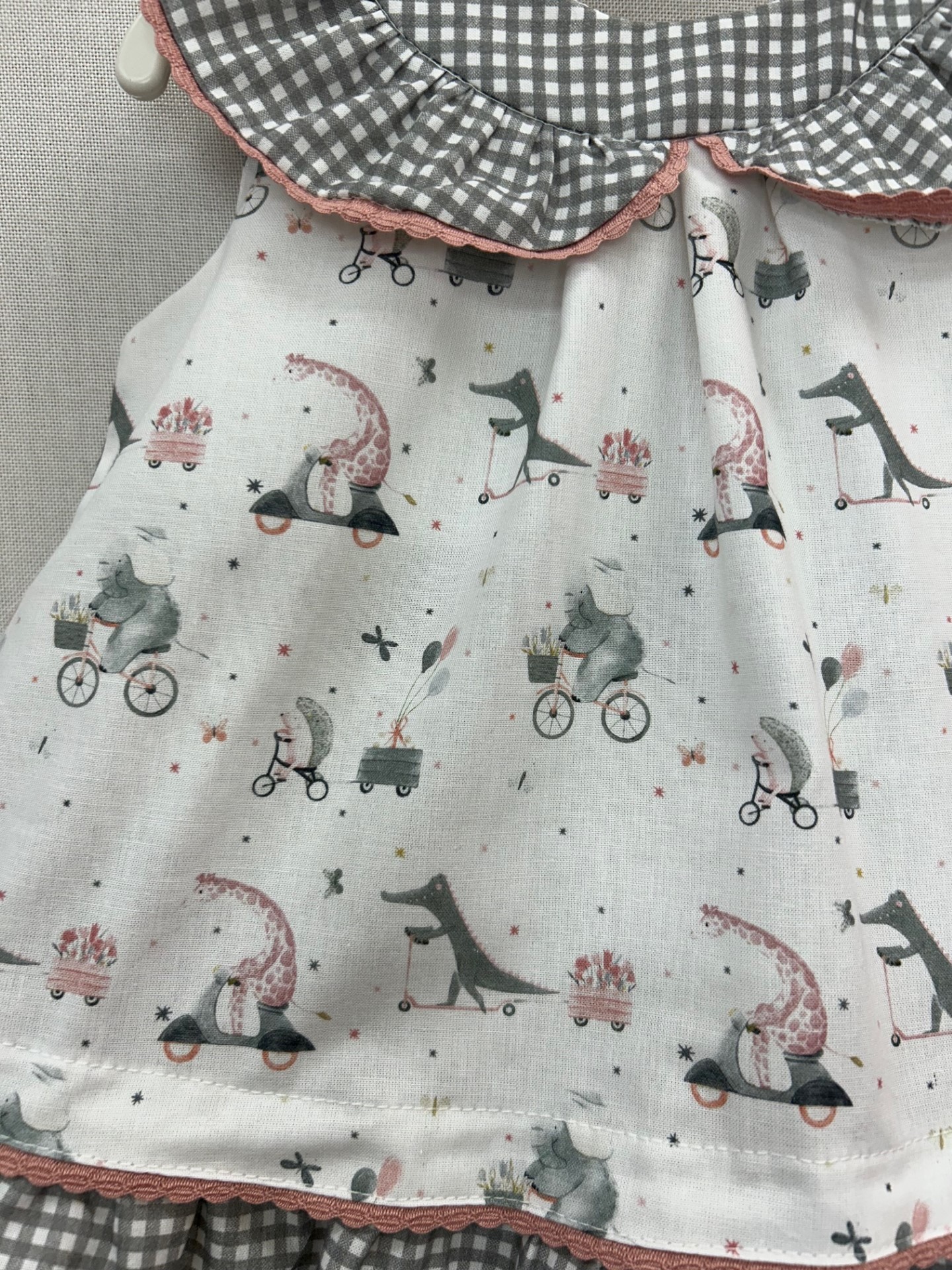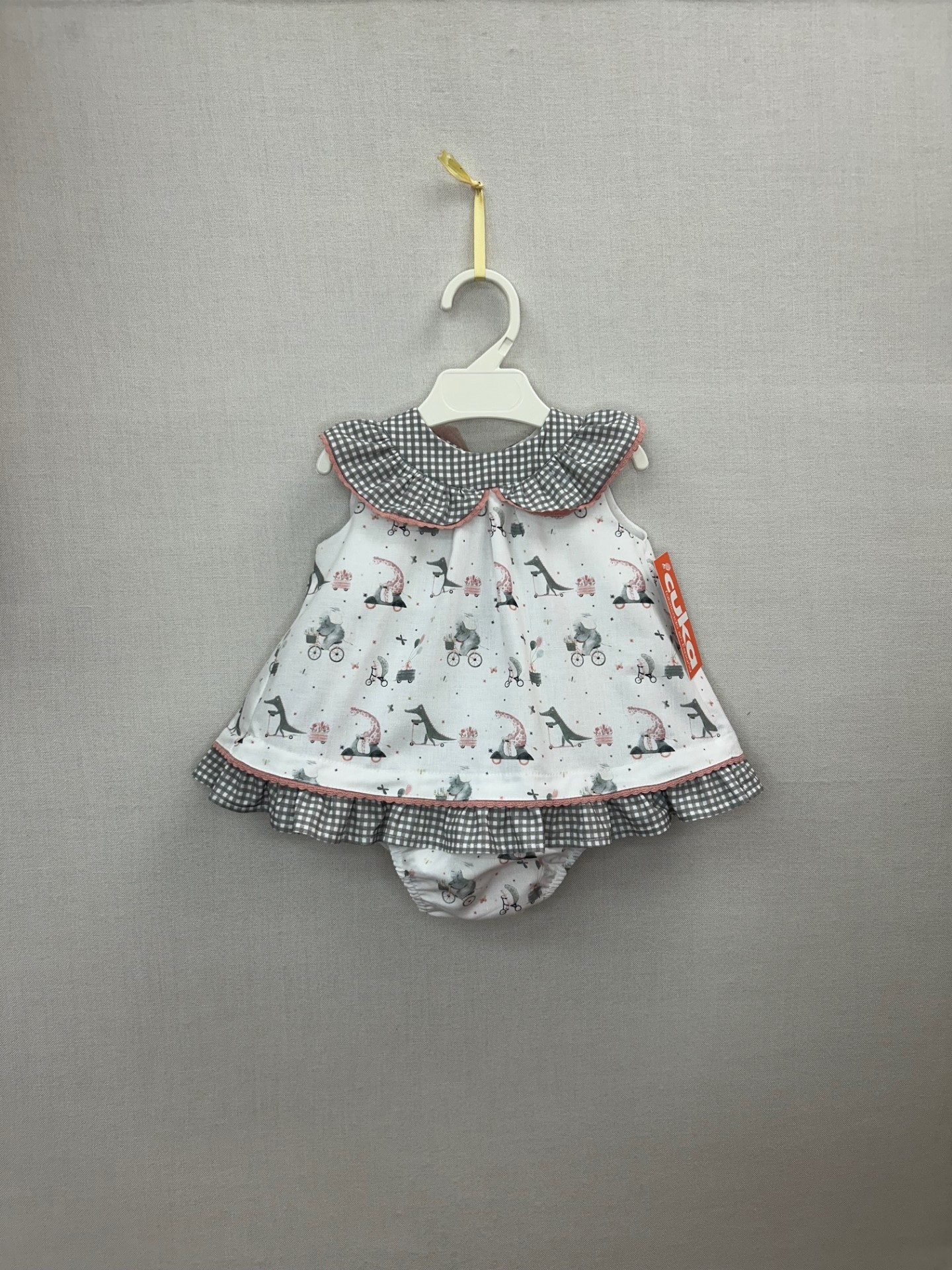 Vestido/jesusito estampado muñecos y cuadros vichy para bebé niña de la colección «Despecha», Cuka, Basmartí.