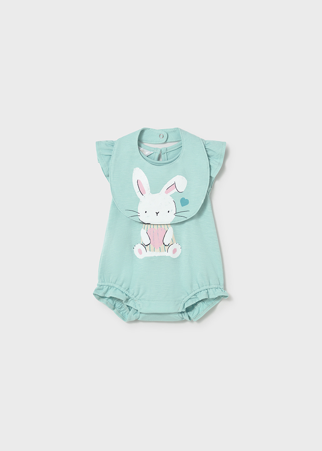 Conjunto pelele y babero para bebé de la colección canastilla niña de Mayoral.