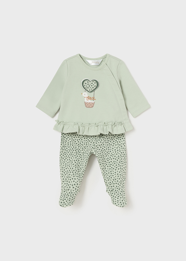 Conjunto polaina estampada para bebé niña de la colección canastilla de Mayoral.