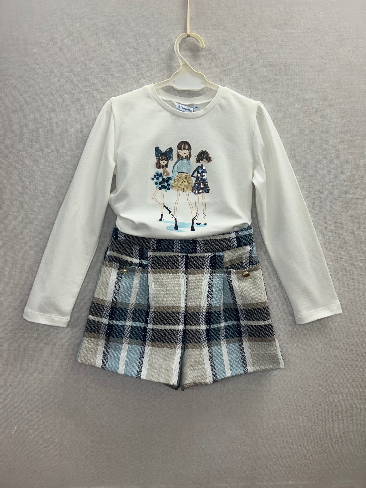 Conjunto camiseta m/l y bermuda cuadros para mini niña de Mayoral.