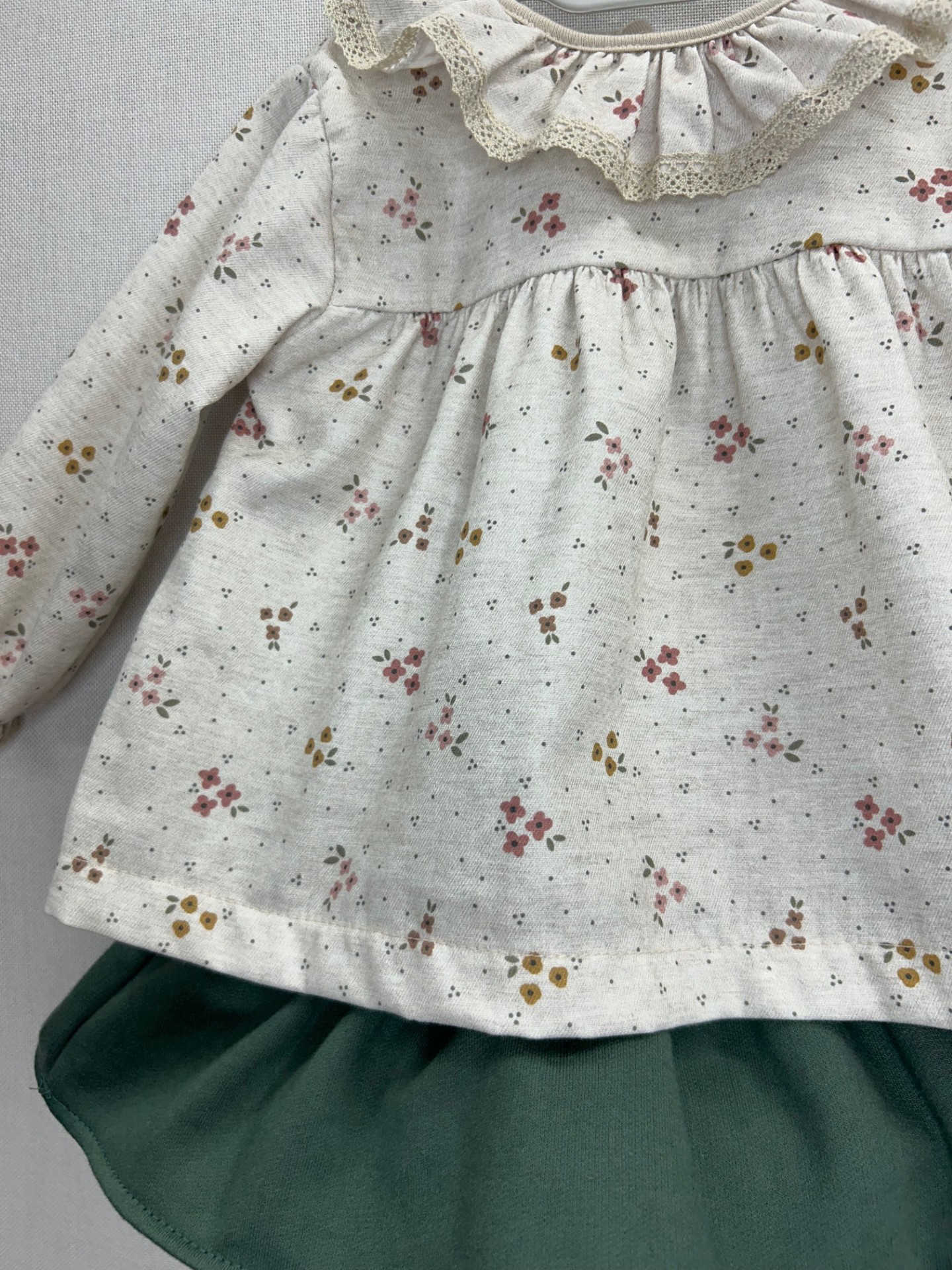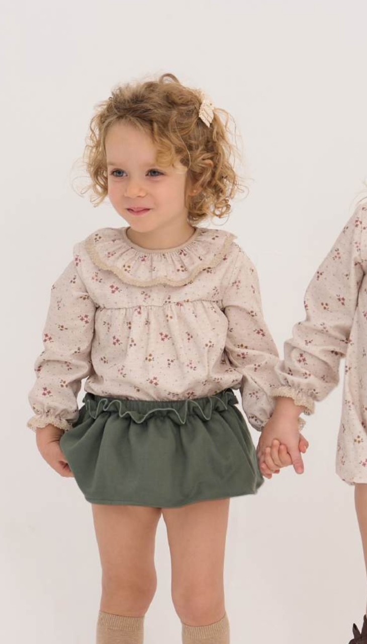 Conjunto blusa estampada florecitas y falda (braguita volante) verde para bebé niña de Rapife.