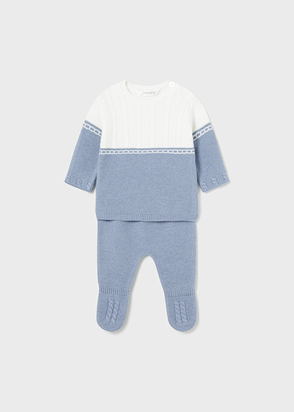 Conjunto polaina tricot para bebé niño de la colección canastilla de Mayoral.