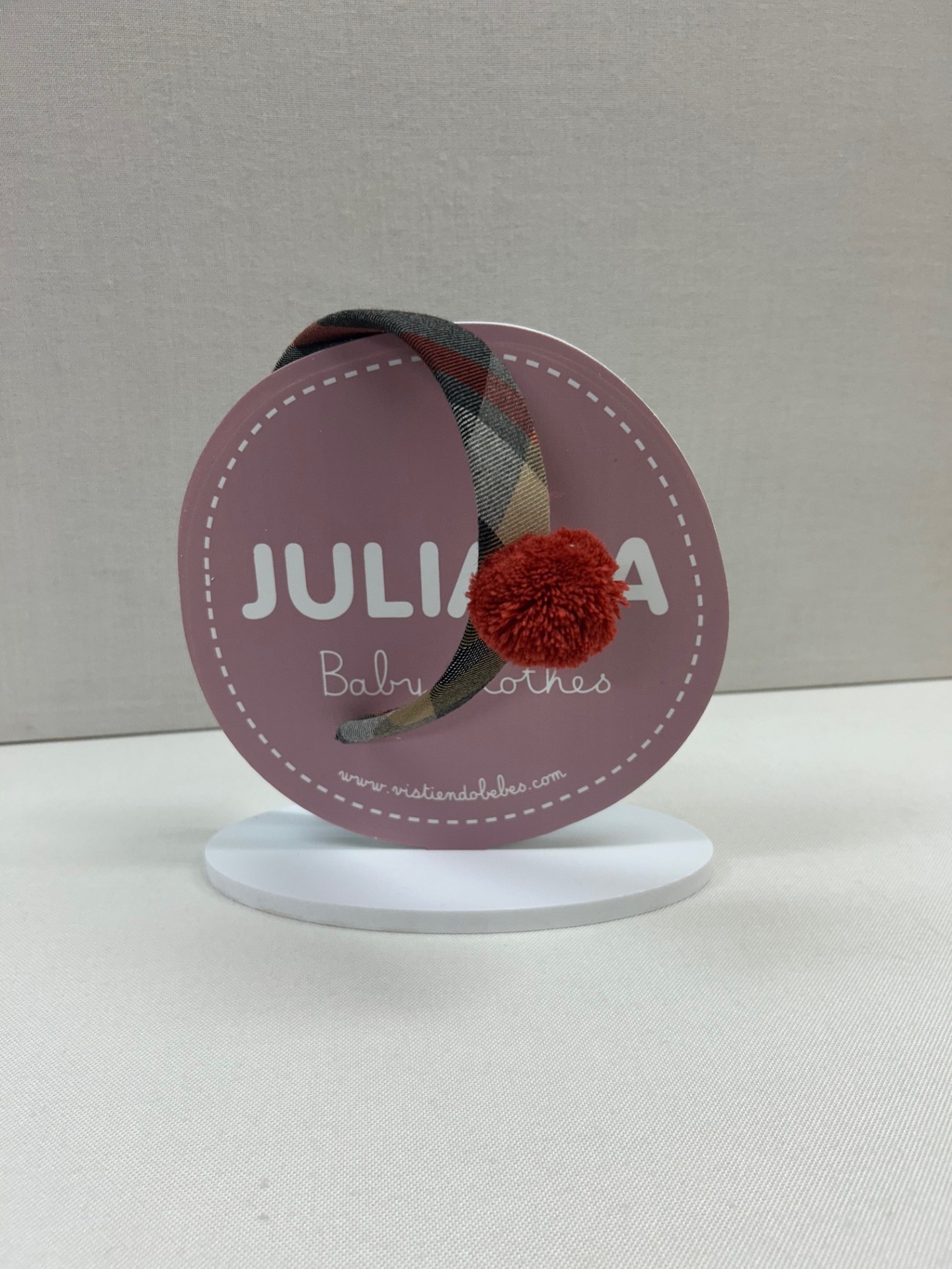 Diadema cuadros pompón para bebé niña de Juliana.
