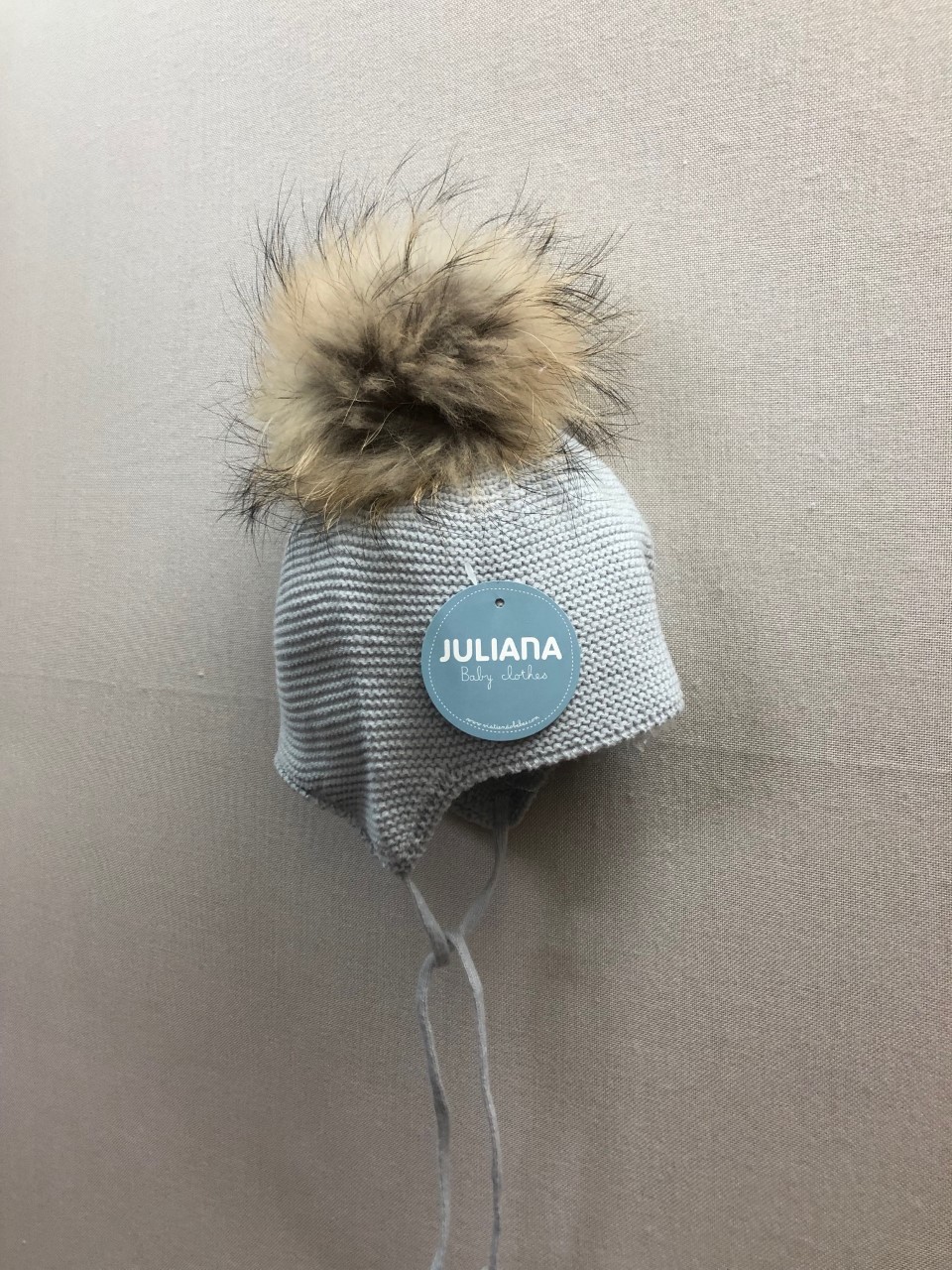Gorro pompón pelo de atar para bebé de Juliana.