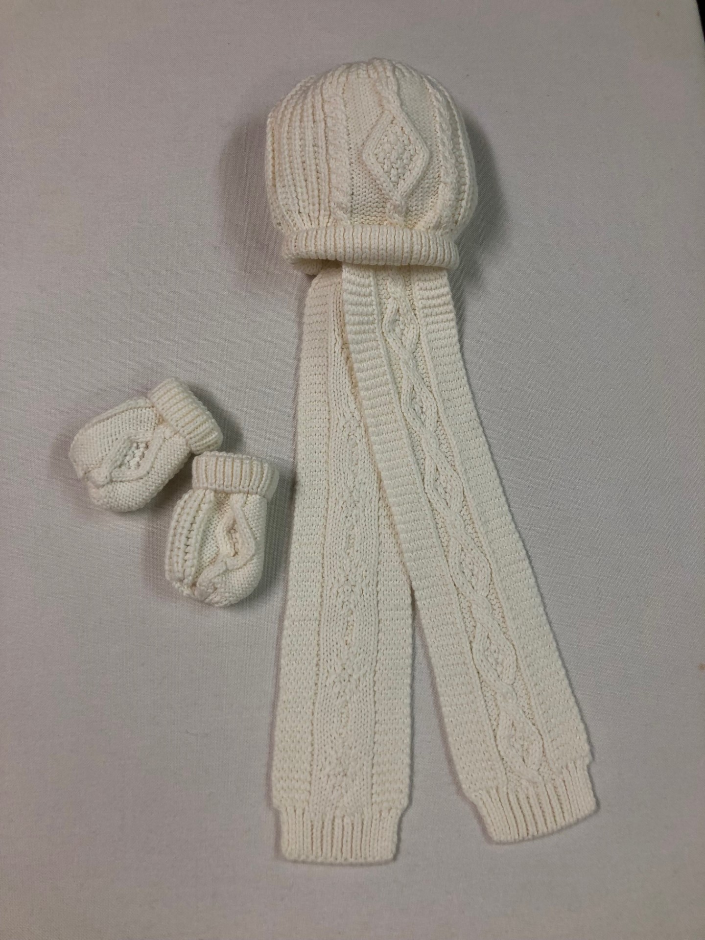 Gorro con bufanda y manoplas de punto para bebé niña de Mayoral.