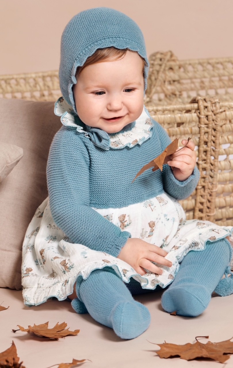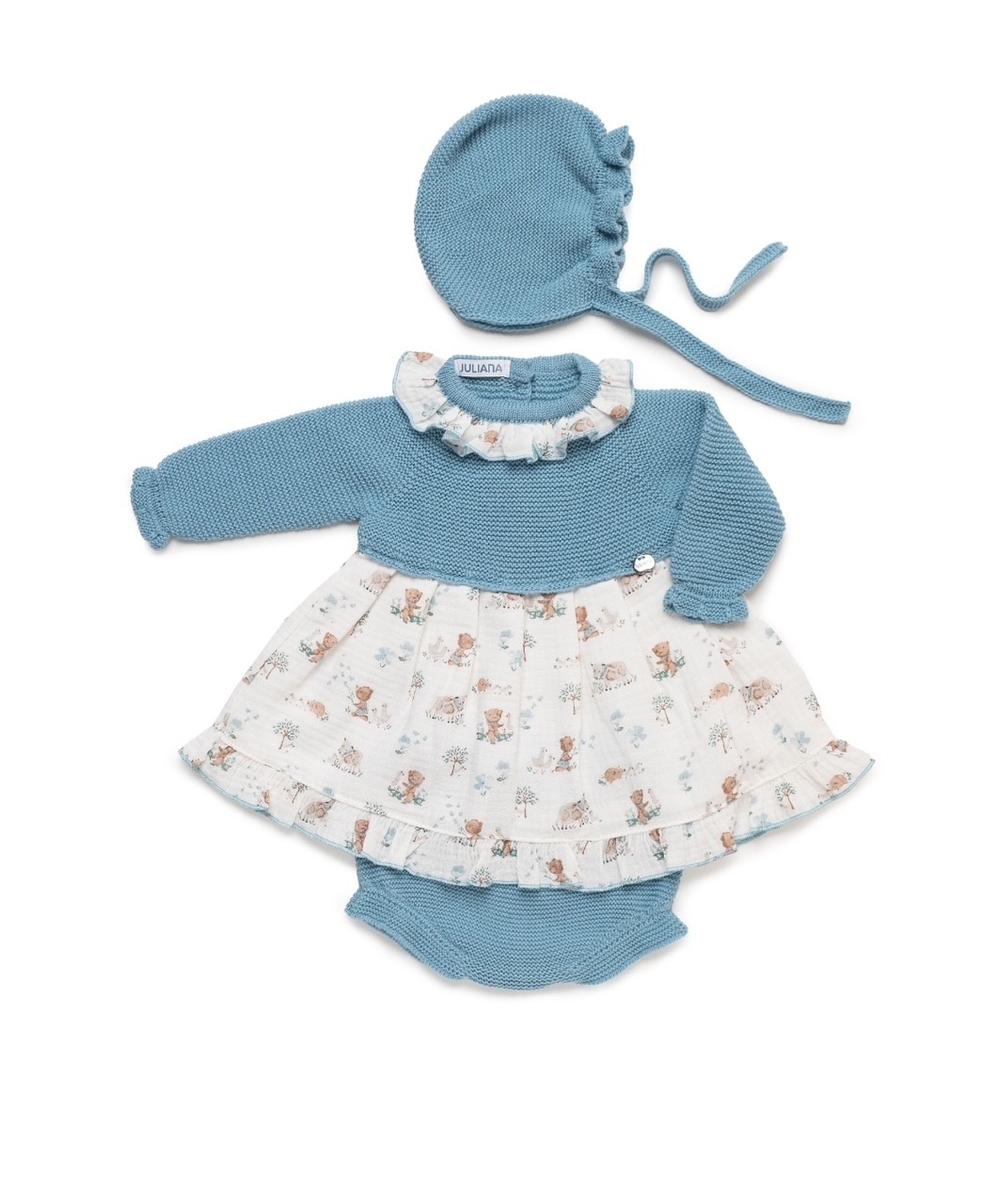 Jesusito/vestido animalitos, con capota y braguita punto, para bebé niña de la colección Juliana.