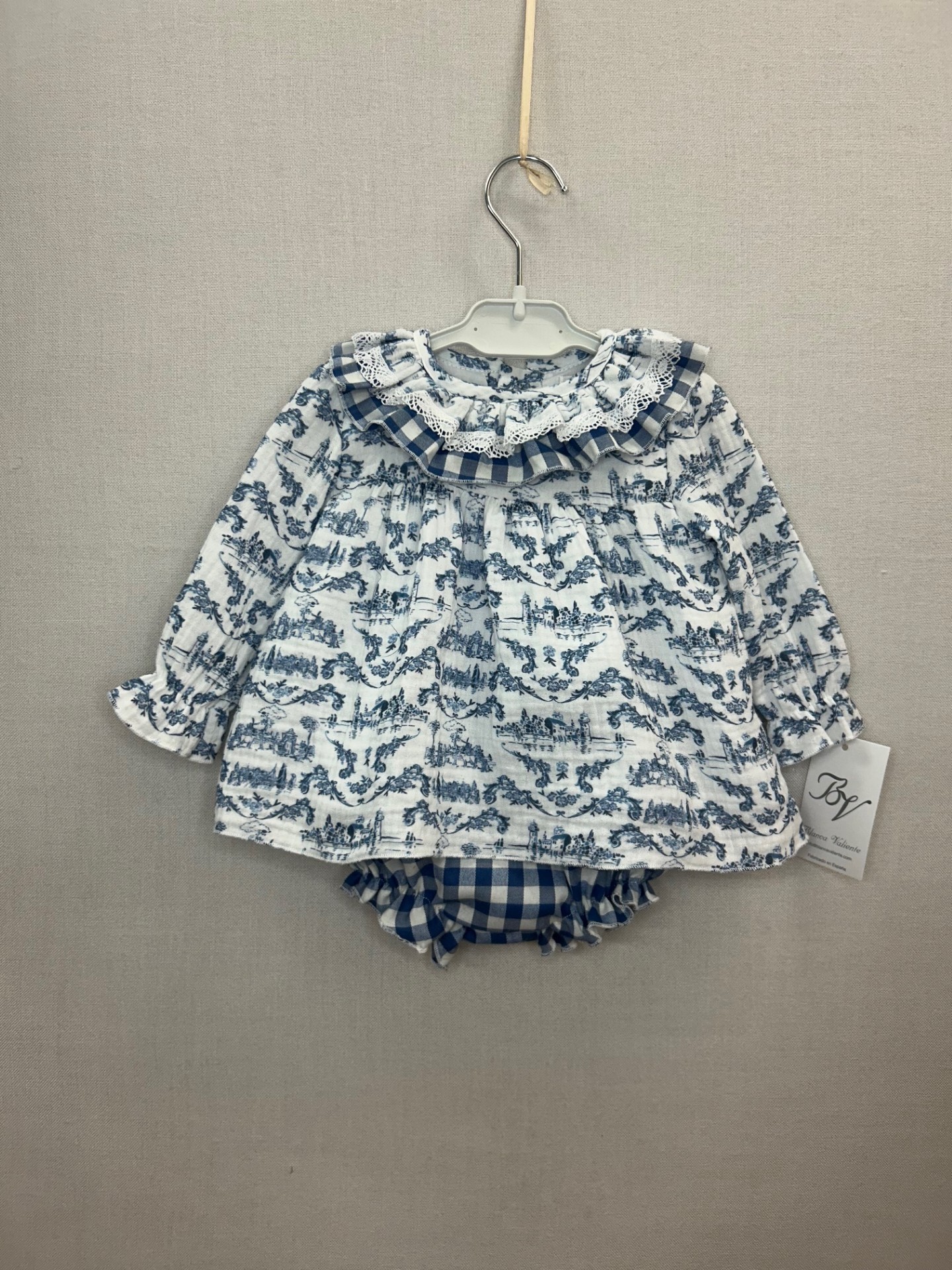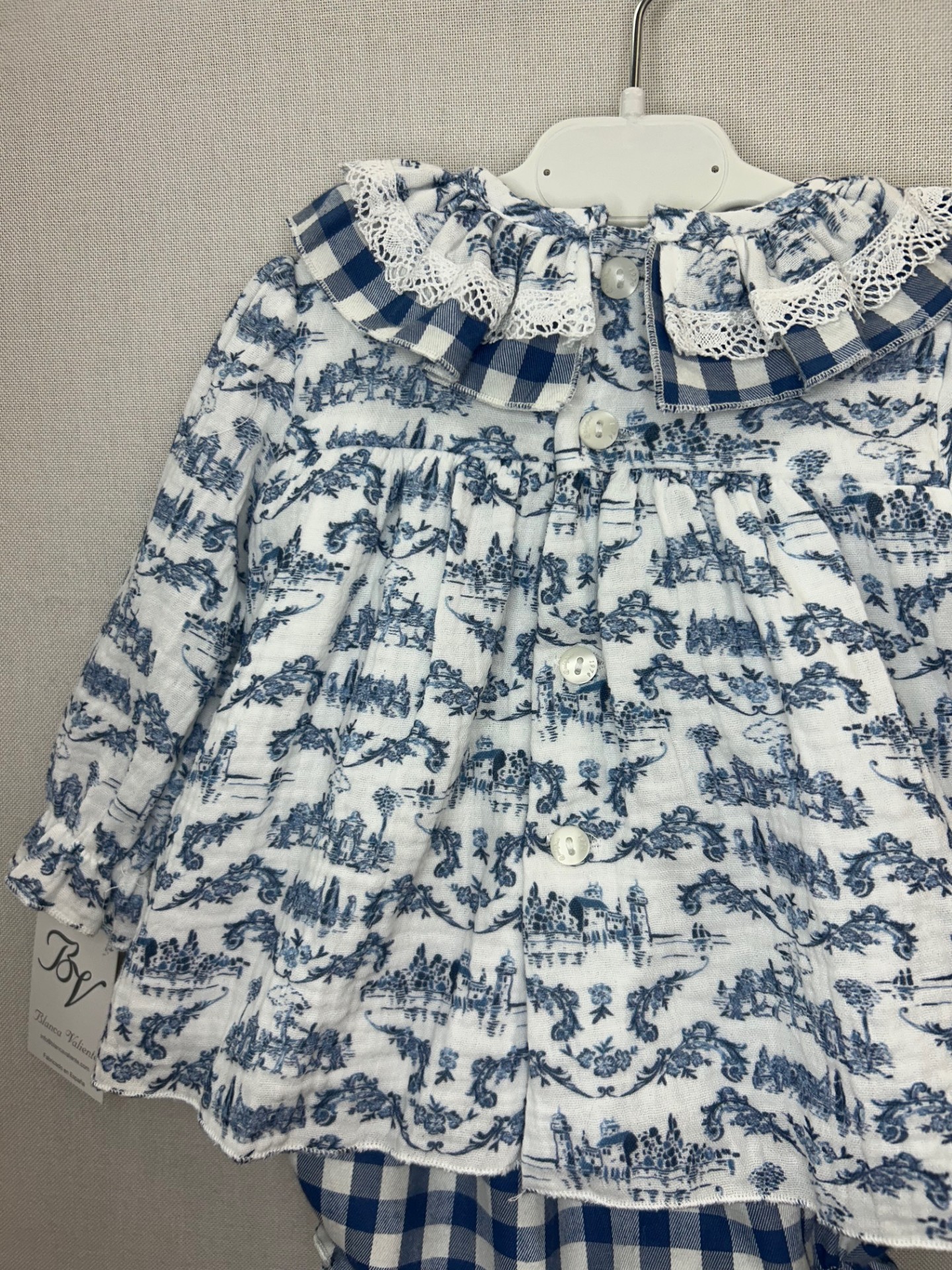 Jesusito estampado cartuja y braguita de cuadros para bebé niña de la colección «Cordoba» de Blanca Valiente.