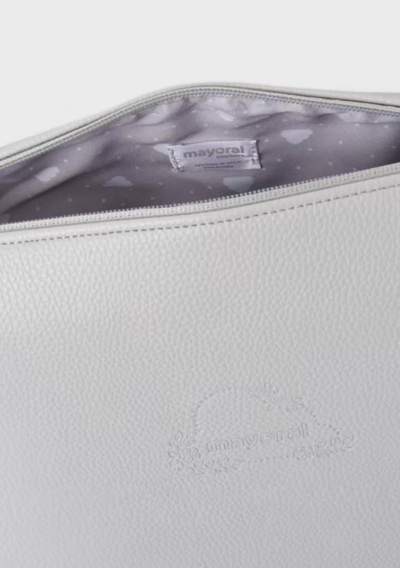 Neceser – organizador polipiel ideal para guardar artículos básicos de aseo e higiene de tu bebé, como cremas y lociones. Cierre con cremallera. Incluye asas cortas de mano que facilitan su manejo. Para bebé niño o niña de canastilla de Mayoral.