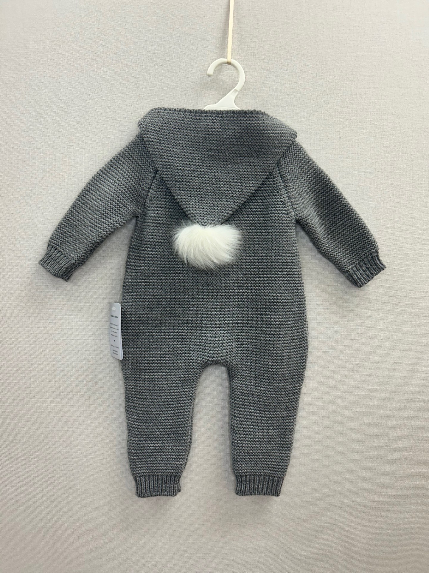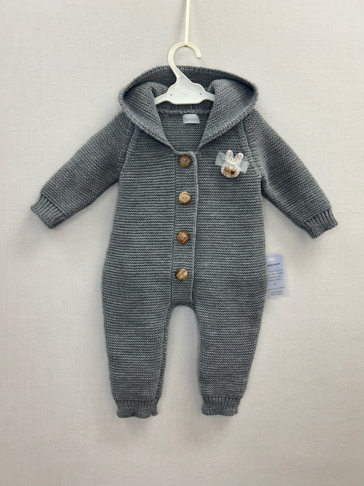 Pelele largo con capucha pompón de pelo para bebé niño niña de Marialex.