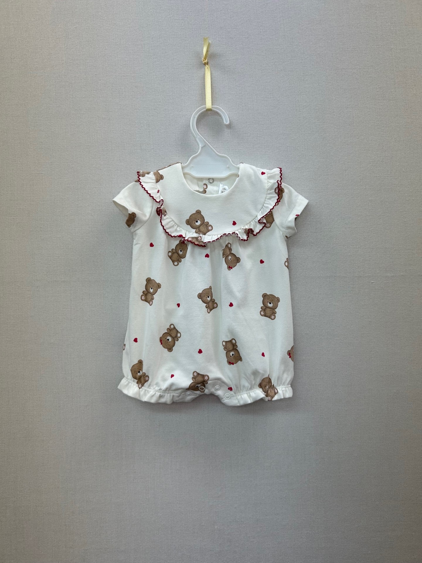 Pelele corto de algodón ositos para canastilla niña de la marca Mayoral.