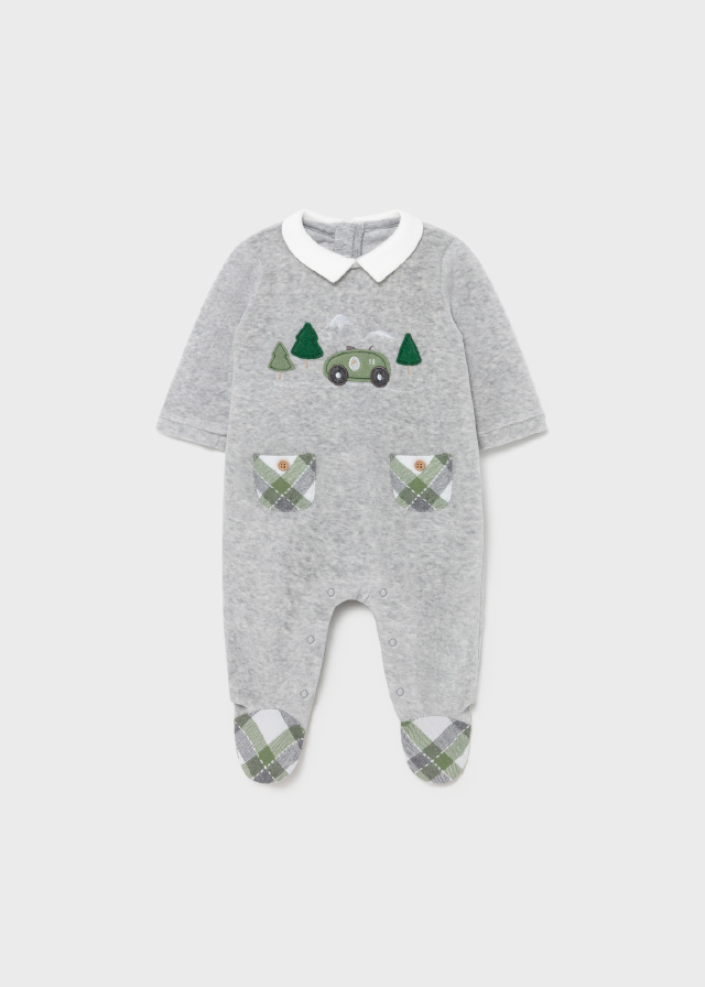 Pijama manga larga tundosado, terciopelo, para bebé canastilla niño de Mayoral.