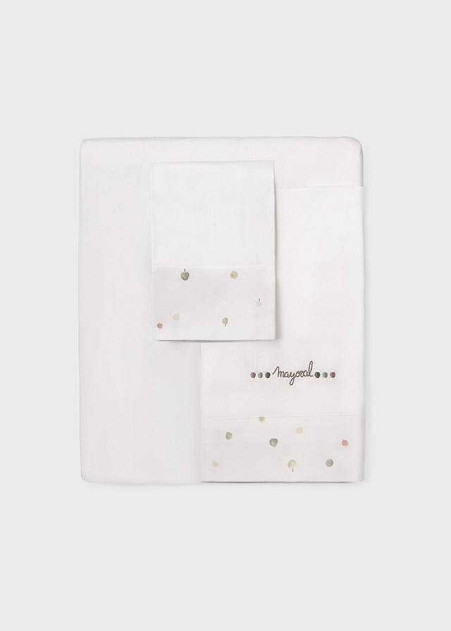 Sábanas de mini cuna 3 piezas, de algodón 100%, colección canastilla de Mayoral.