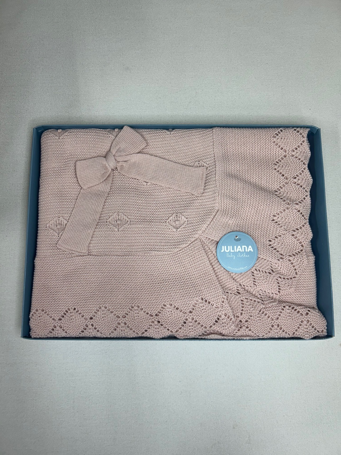 Toquilla/chal lin rombos, punto invierno, lazo punto para bebé niña de la colección Juliana.
