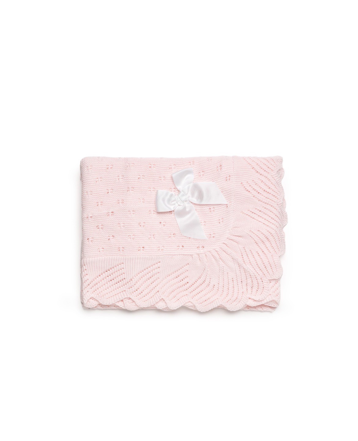 Toquilla / chal punto verano rosa con lazo en blanco para bebé niña de la colección Juliana.