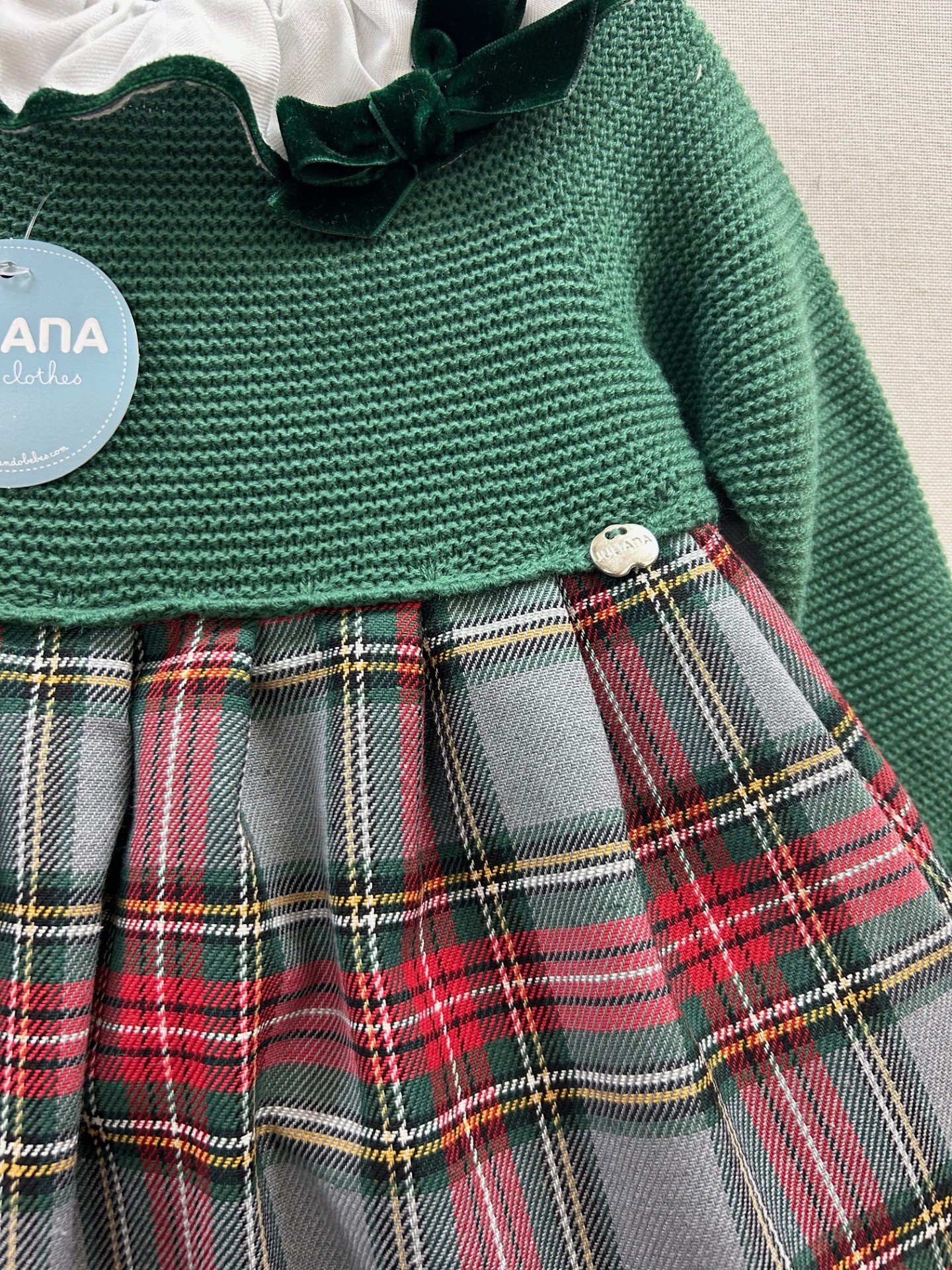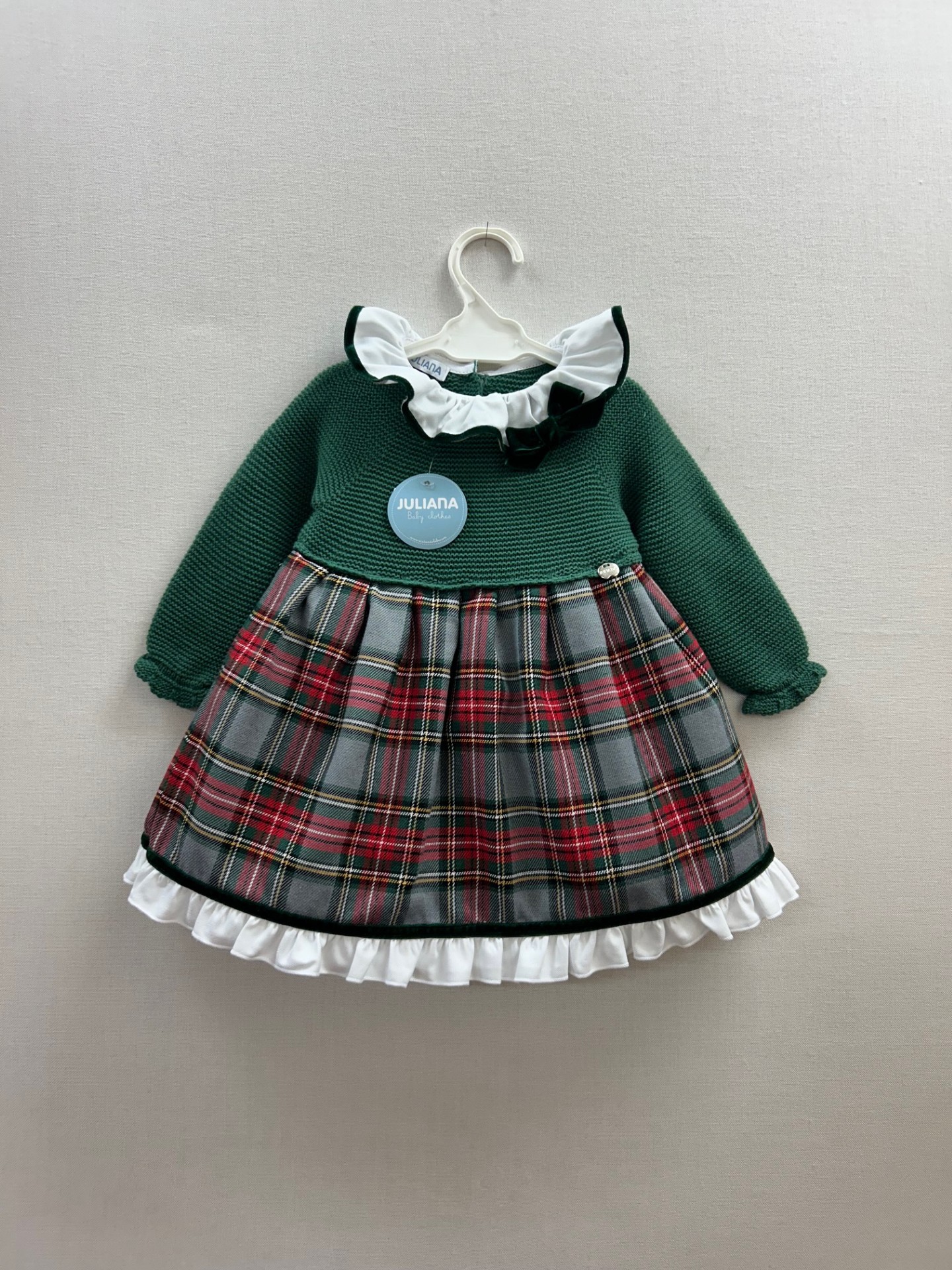 Vestido cuerpo punto cuadros volante terciopelo para bebé niña de Juliana.