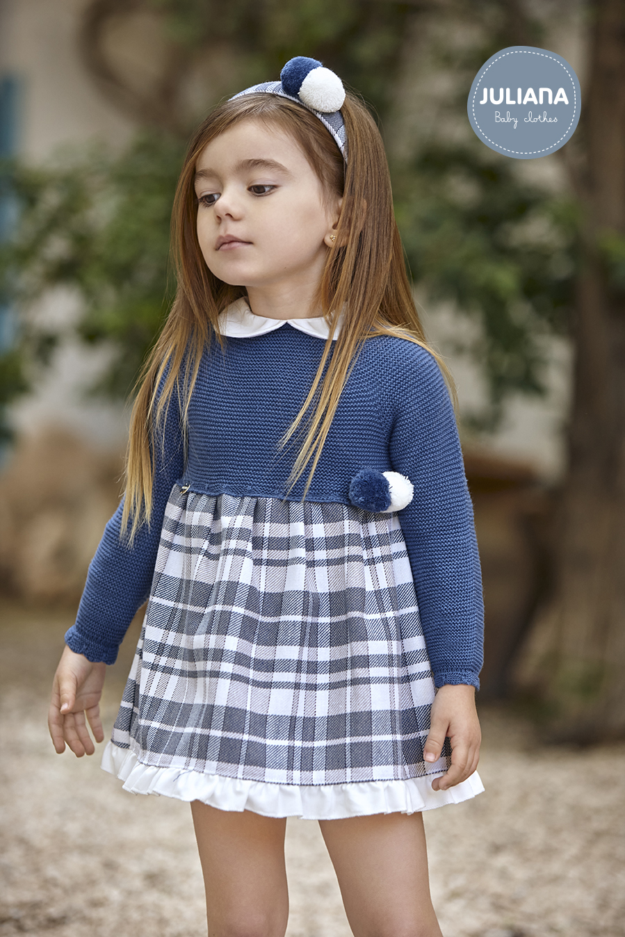 Vestido combinado punto y tela de cuadros para bebé niña de Juliana.