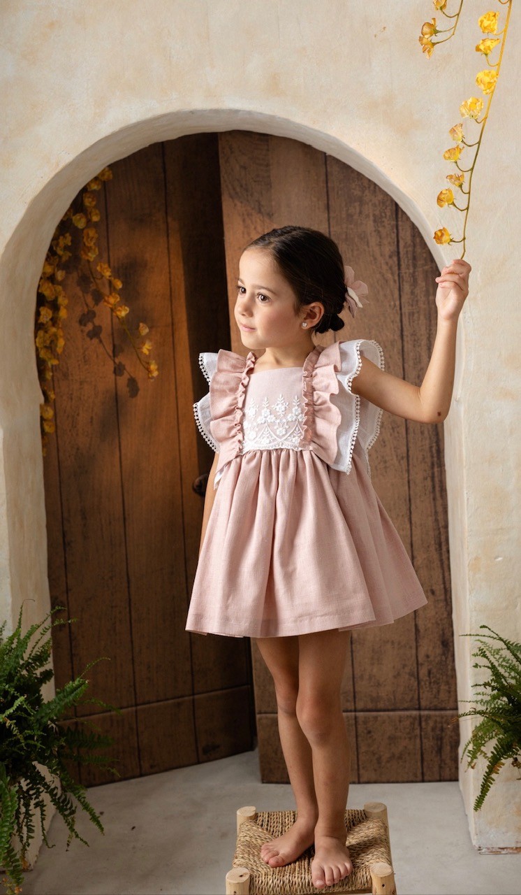 Vestido «melocotón» para mini niña de la colección «LUA» de Basmartí.