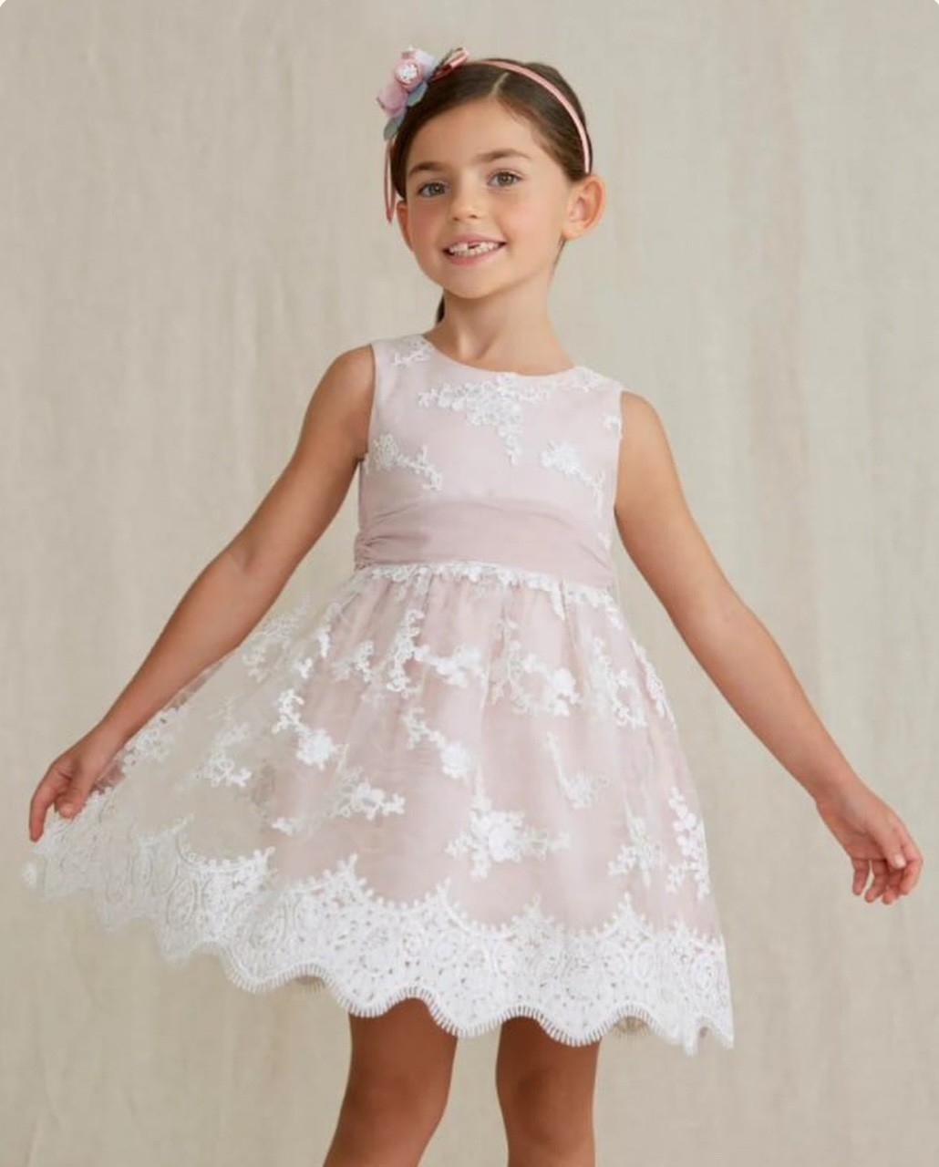 Vestido tul bordado con forro para dar volumen a la falda. Lazada en la espalda para mini niña de Abel y Lula.