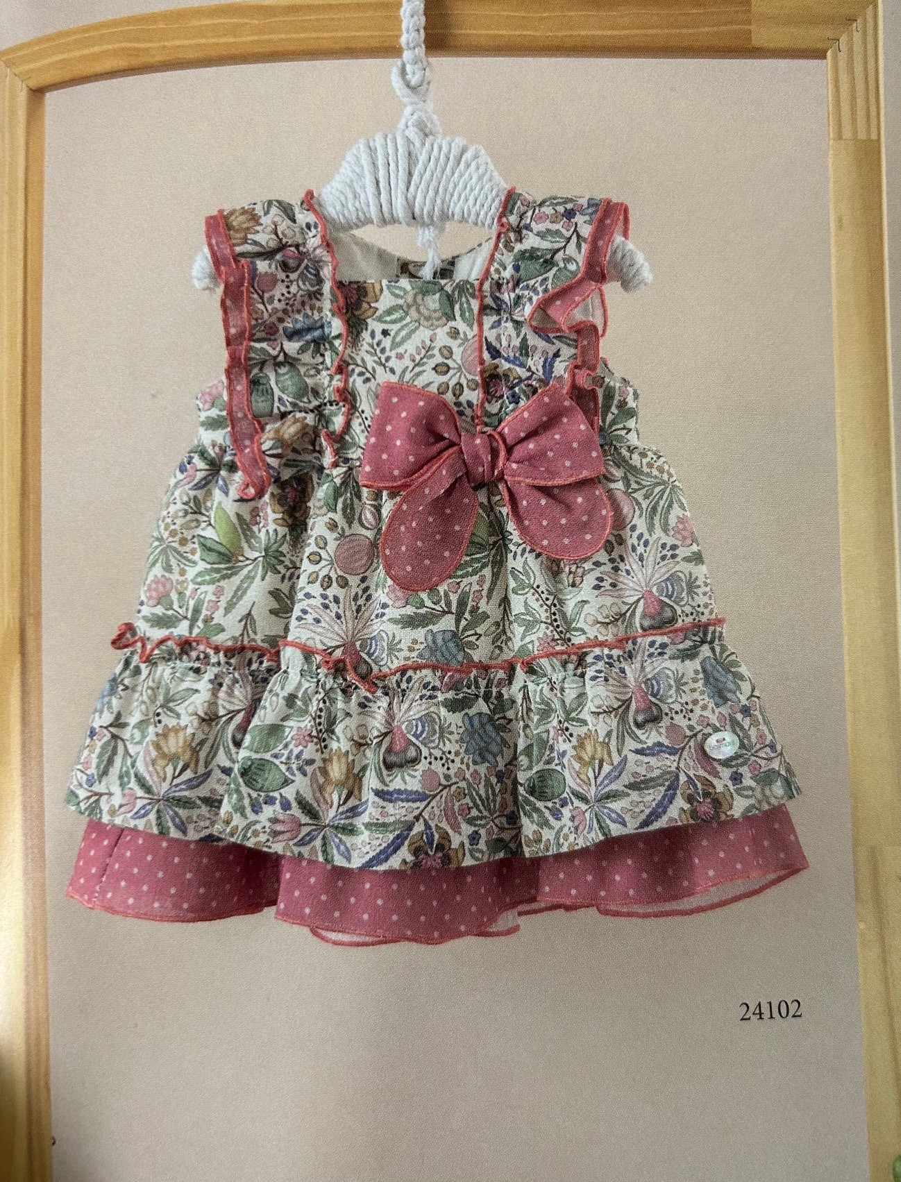 Vestido estampado con adorno lazo para bebé niña de la colección «Ninfa» de Basmartí.