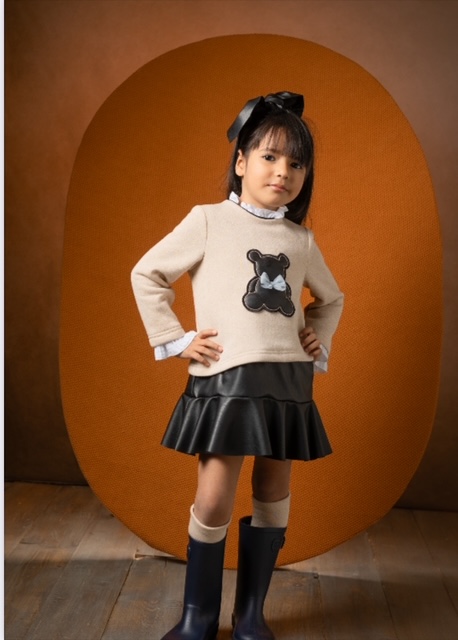 Vestido combinado algodón y polipiel para niña Basmartí. Colección Consagración de la Primavera.