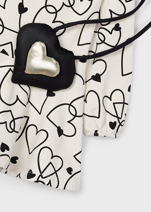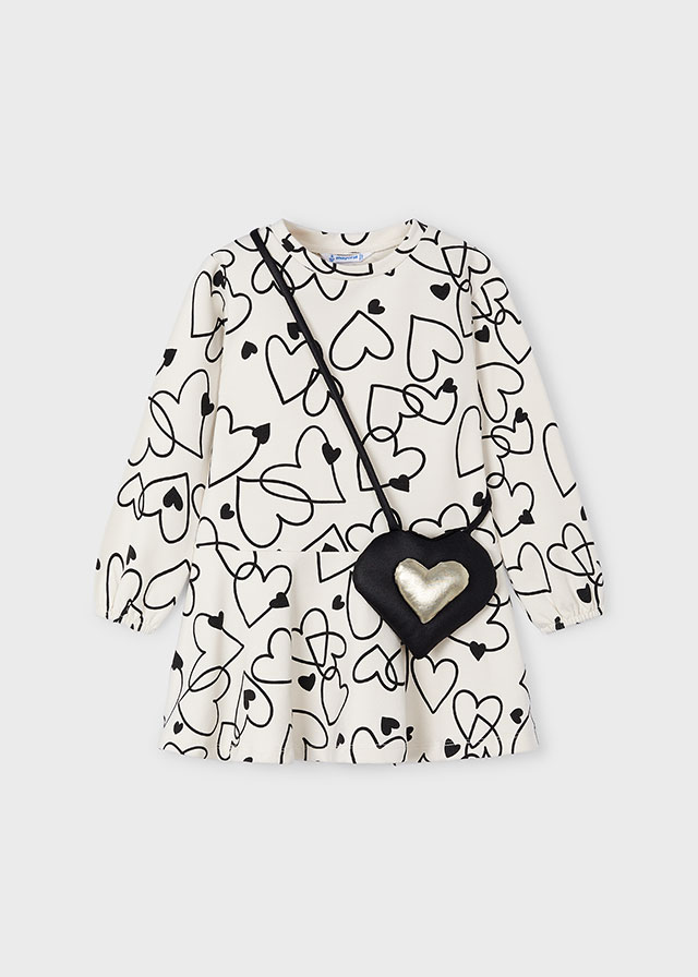 Vestido punto corazones y bolsito para mini niña de Mayoral.