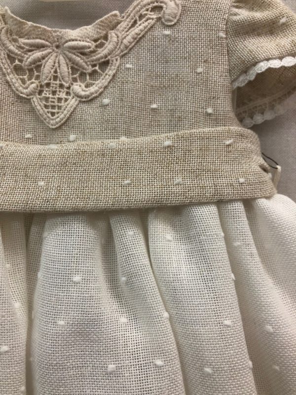Jesusito manga corta y braguita lino para bebé niña de la colección Perla de Basmartí.